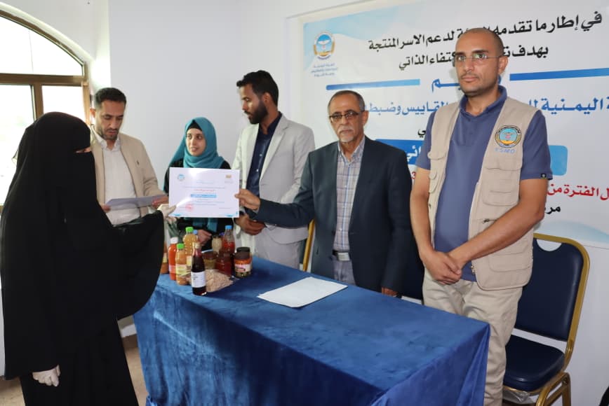 اختتمت اليوم بصنعاء دورة تدريبية خاصة بأسس التصنيع الغذائي نظمها مركز التدريب والتأهيل بالهيئة اليمنية للمواصفات والمقاييس وضبط الجودة.هدفت الدورة على مدى  خمسة أيام إلى رفد ٣٠ متدربة من الأسر المنتجة بمهارات ومعارف حول طرق حفظ الأغذية ومبادى سلامة الغذاء واشتراطات التصنيع الغذائي الجيد وأهمية بطاقة البيان ومتطلباتها وكذلك المواد المضافة في المنتحات الغذائية. وطرق تلافي العيوب والمشاكل أثناء التصنيع.