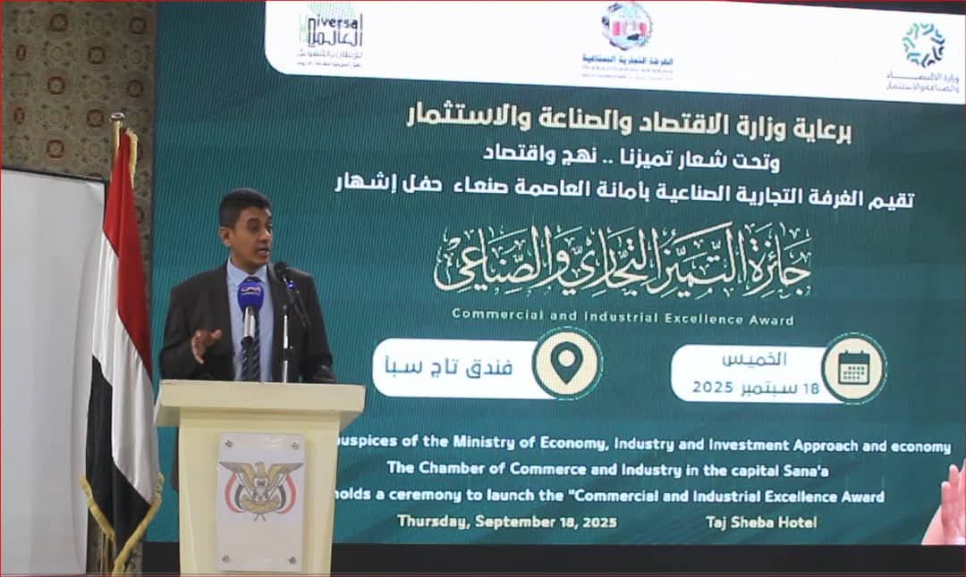 اقامت الغرفة التجارية الصناعية بأمانة العاصمة اليوم بصنعاء حفل إشهار جائزة التميز التجاري والصناعي تحت شعار ” تميزنا.. نهج واقتصاد”.
