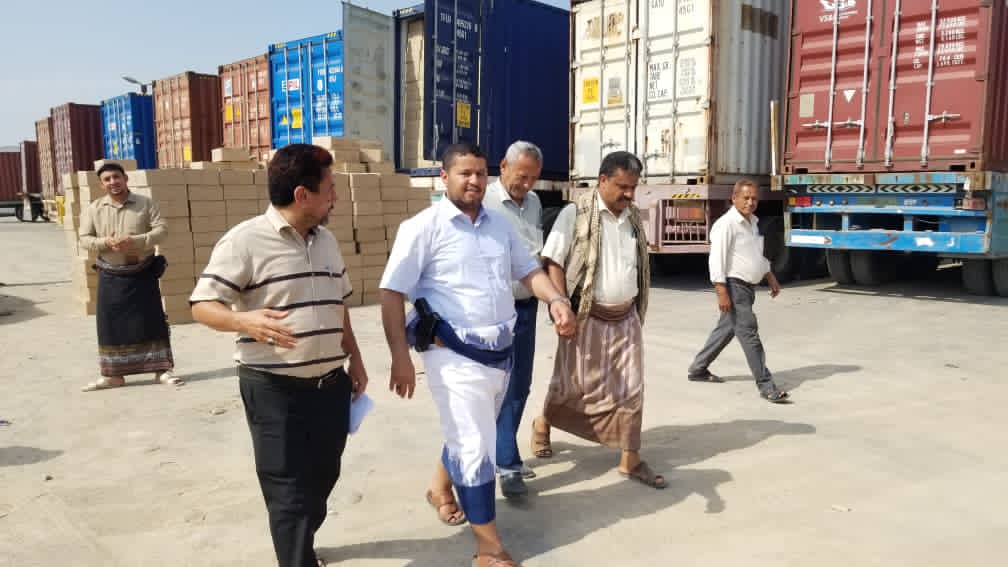 اطلع مدير عام الهيئة اليمنية للمواصفات والمقاييس وضبط الجودة عبد الله العاطفي اليوم على سير العمل في مواقع الرقابة والتفتيش والفحص التابعة للهيئة بميناء الحديدة والإجراءات المتخذة في التعامل مع السفن والبضائع الواصلة وكذا عمليات الفحص المخبري والتحليل الفني للسلع المستوردة.