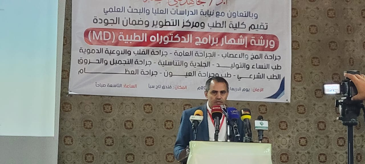 من جانبه أكد رئيس جامعة 21 سبتمبر الدكتور مجاهد معصار أهمية الشراكة مع الاختصاصيين والأكاديميين والأطباء لمناقشة وإثراء برامج الدكتوراه الطبية في التخصصات النوعية، خصوصاً بعد مناقشة وإقرار لائحة الدكتوراه الطبية ” إم دي” في قطاع التعليم العالي.