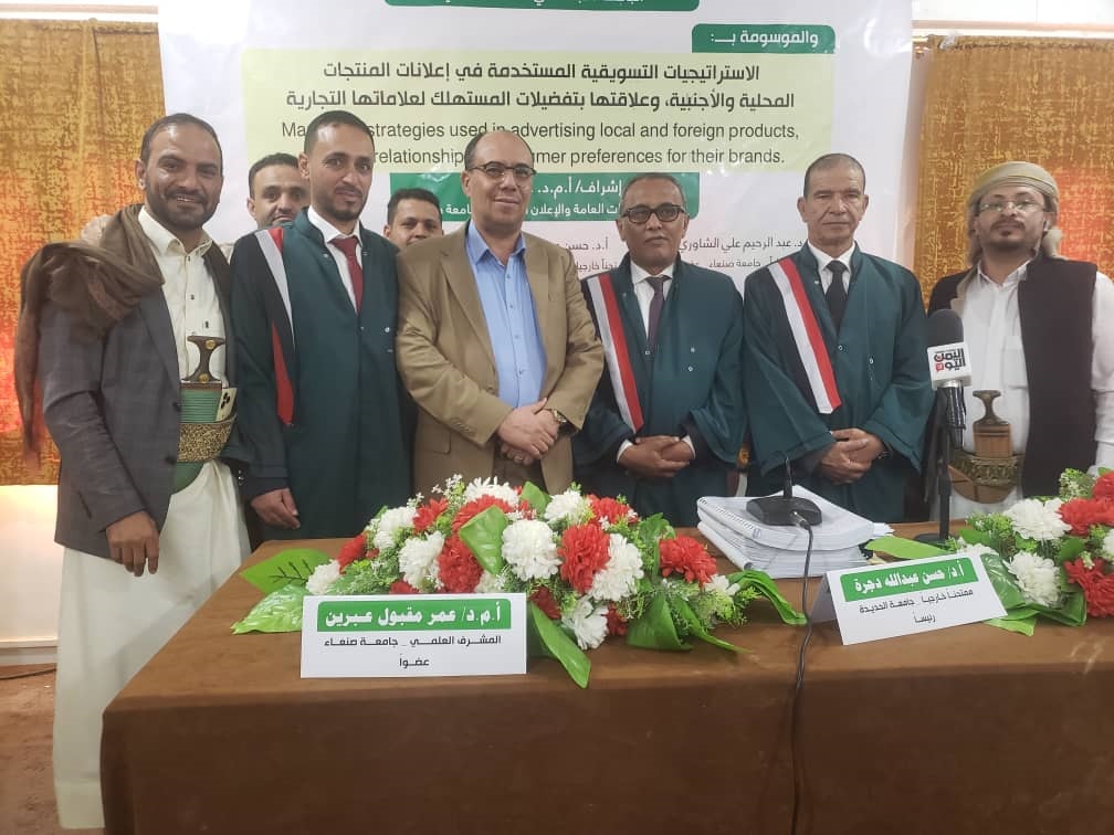 بدوره أشاد الأستاذ الدكتور عمر عبرين المشرف على الرسالة، بتميز الباحث في إعداد دراسته، معربًا عن أمله في أن يسهم النموذج العلمي الذي تضمنته الرسالة في إثراء بحوث الاستراتيجيات التسويقية الإعلانية، سواء في اليمن أو في بلدان أخرى.