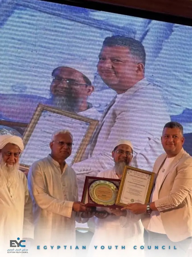 فاز مجلس الشباب المصري بجائزة الخدمة الإنسانية لعام 2026، وذلك خلال فعالية دولية أقيمت في العاصمة البنغالية دكا، بحضور الدكتور محمد ممدوح رئيس مجلس الأمناء الذي تسلم درع التكريم.