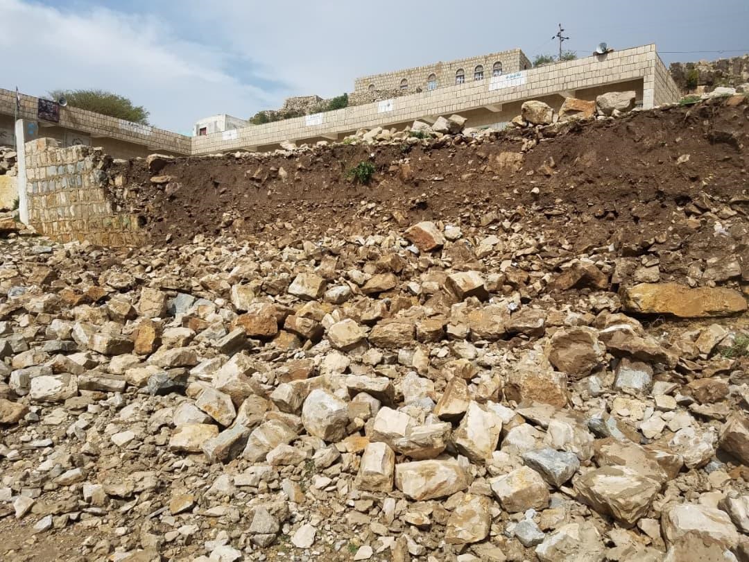 وبحسب ادارة المدرسة وشهادات الأهالي تدفقت سيول الامطار الى المدرسة بغزارة ما ادى الى انهيار كامل للسور من الركن الجنوبي وحتى البوابة بمسافة تقدر بنحو 20 مترًا.كما احدثت تشققات في الجدار الخارجي لغرفة المخزن تهدد بسقوطها الى جانب تضرر معظم مرافق المدرسة بشكل يجعلها غير قادرة على أداء رسالتها.