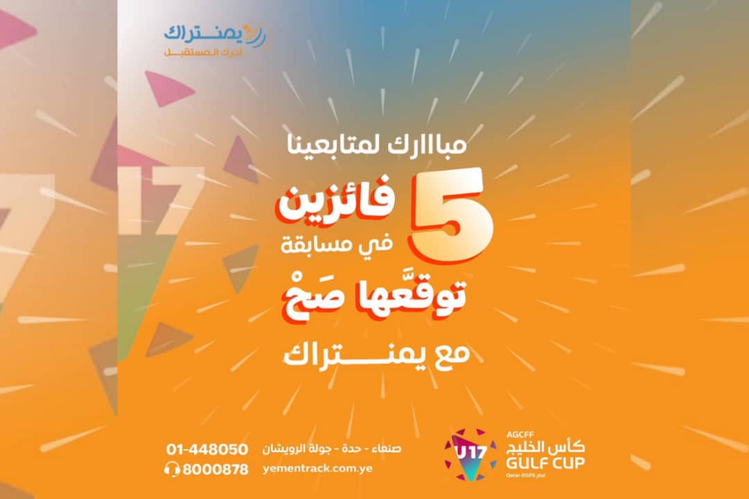 بالتزامن مع أجواء الحماس الكروي والالتفاف الجماهيري خلف منتخبنا الوطني للناشئين تحت 17 سنة، أعلنت شركة يمنتراك عن إطلاق مسابقة تفاعلية مثيرة عبر منصاتها الرقمية، تزامنًا مع المباراة المرتقبة لمنتخب اليمن ضد نظيره القطري يوم الأحد الموافق 21 سبتمبر 2025، ضمن الجولة الأولى من بطولة كأس الخليج للناشئين. وقالت الشركة في إعلانها: “كل قلوبنا مع منتخبنا اليماني، ونتمنى لهم الفوز…