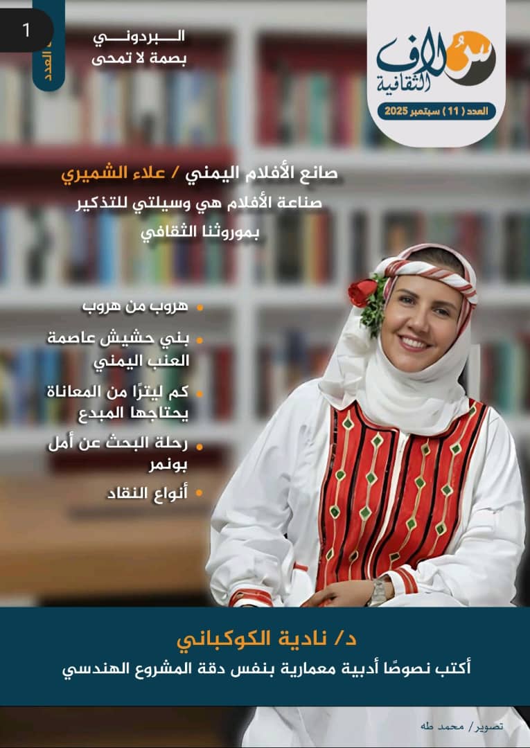 صدر مؤخراً العدد الحادي عشر من مجلة سلاف الثقافية الشهرية. وقد أوضح رئيس تحرير المجلة الشاعر بلال قائد: بأن المجلة أفردت ملف العدد للاحتفاء الرمزي بالذكرى السادسة والعشرين للشاعر والمفكر عبدالله البردوني؛ في محاولة لإلقاء الضوء على ما آل إليه وضع منزله، في مفارقة مؤلمة توضح مدى اللامبالاة برموزنا الثقافية. كما تضمن العدد حواراً مع المهندسة والروائية نادية الكوكباني، و…