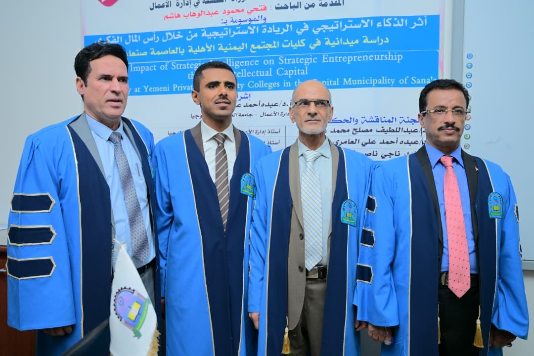 حصل الباحث فتحي محمود عبد الوهاب هاشم، اليوم على درجة دكتوراه، الفلسفة في إدارة الأعمال، بتقدير ممتاز ،جامعة العلوم والتكنولوجيا، عن أطروحته الموسومة بـ ” أثر الذكاء الاستراتيجي في الريادة الاستراتيجية من خلال رأس المال الفكري، دراسة ميدانية في كليات المجتمع اليمنية الأهلية بالعاصمة صنعاء”. وأشادت لجنة المناقشة والحكم برئاسة الدكتور عبد اللطيف مصلح من جامعة العلوم والتكنولوجيا مناقشاً داخلياً،…