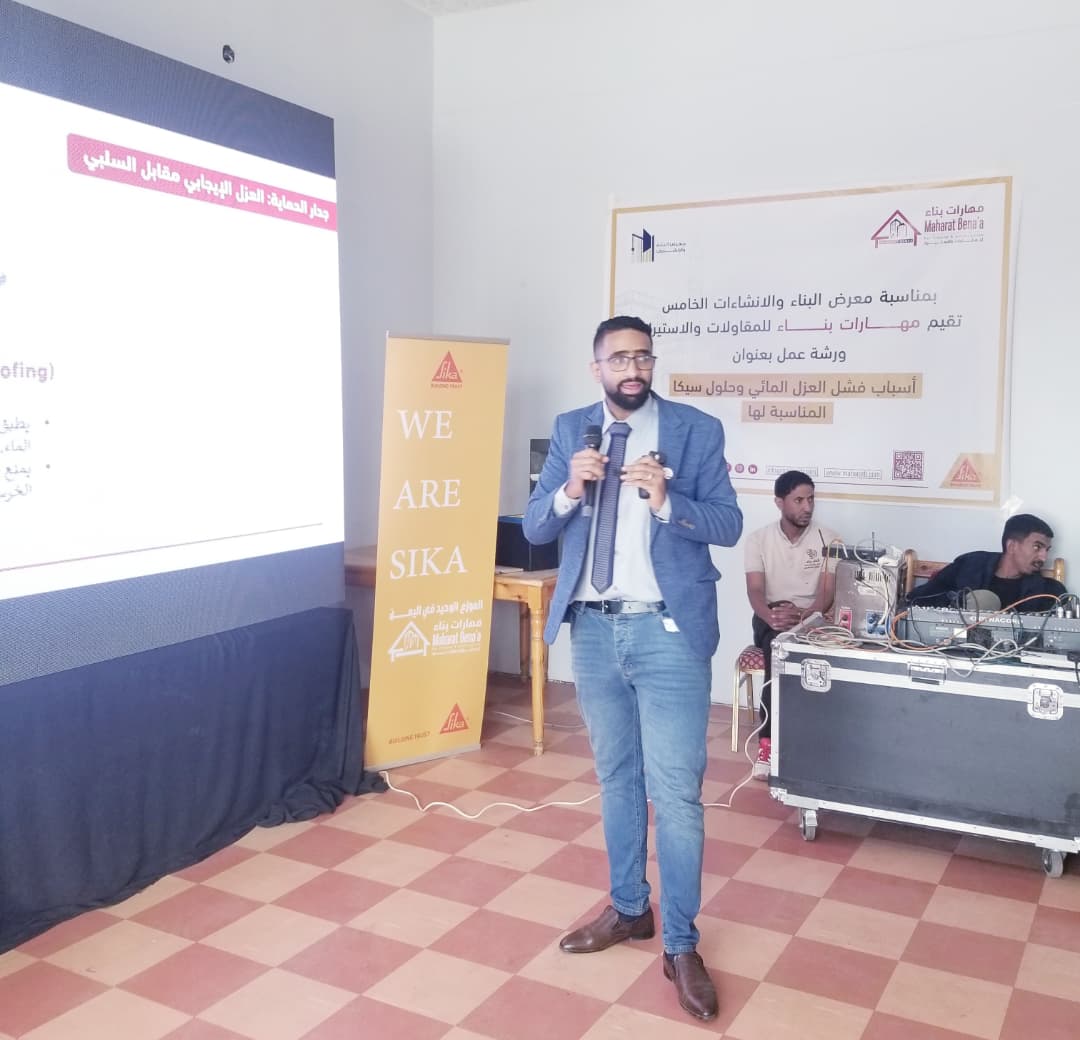 ورشة عمل لمؤسسة مهارات بناء حول أسباب فشل العزل المائي في معرض البناء الإنشاءات الخامس